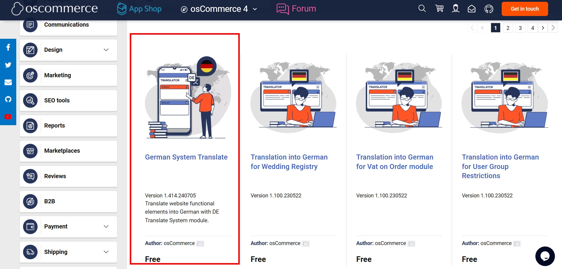- Add the translation module either through the customer's osCommerce account or directly via the AppShop in the Admin Area.