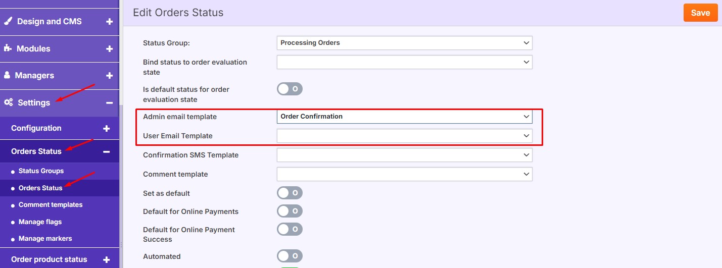 - Order Status Setup: Ensure the correct email template is assigned to each order status under Admin > Settings > Order Status.