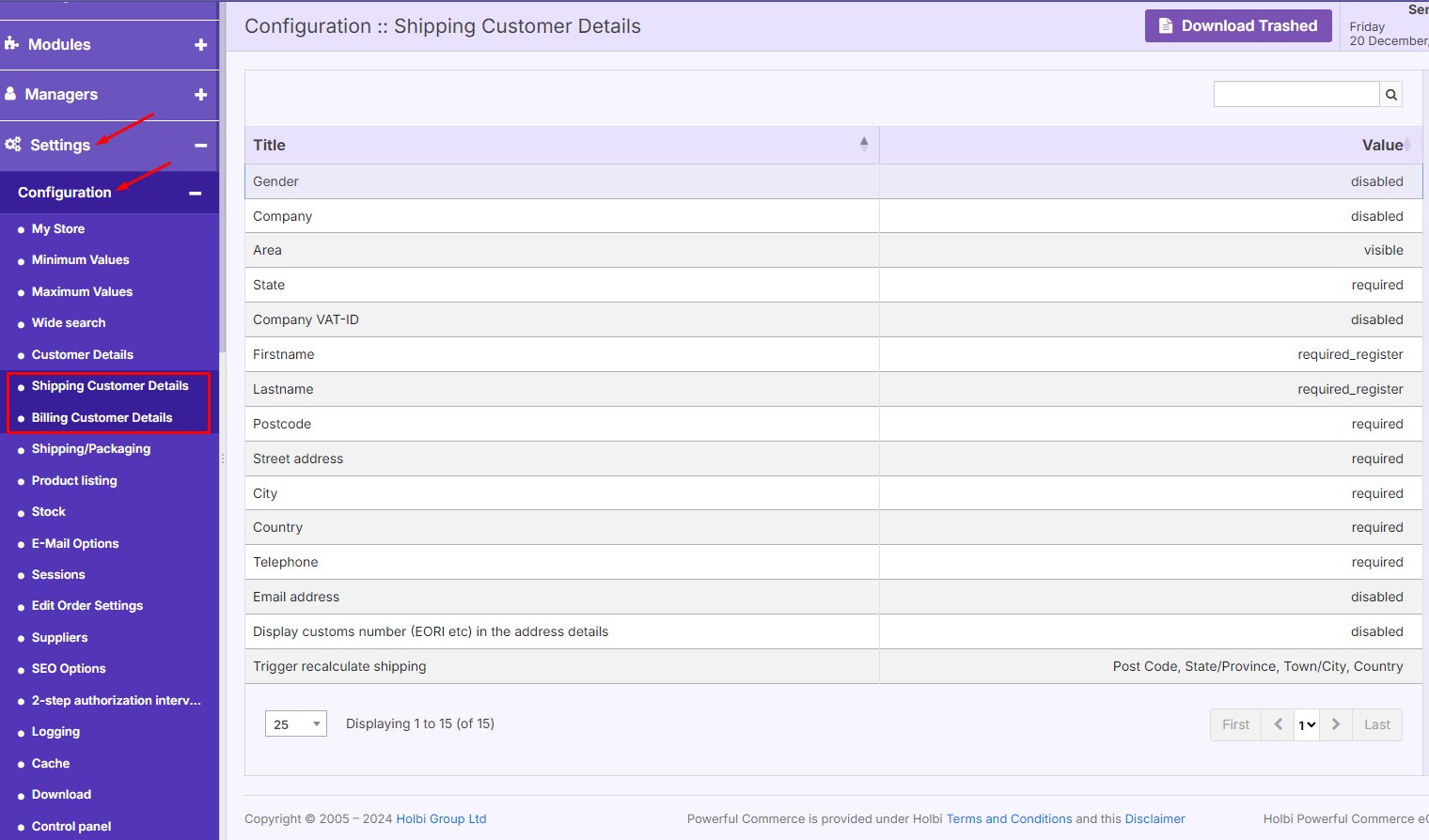 Additional options for Shipping and Billing Customer Details were highlighted under the respective configuration tabs.