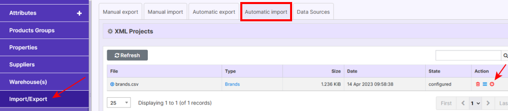 - Go to Products -> Import/Export, where the new import line will appear.