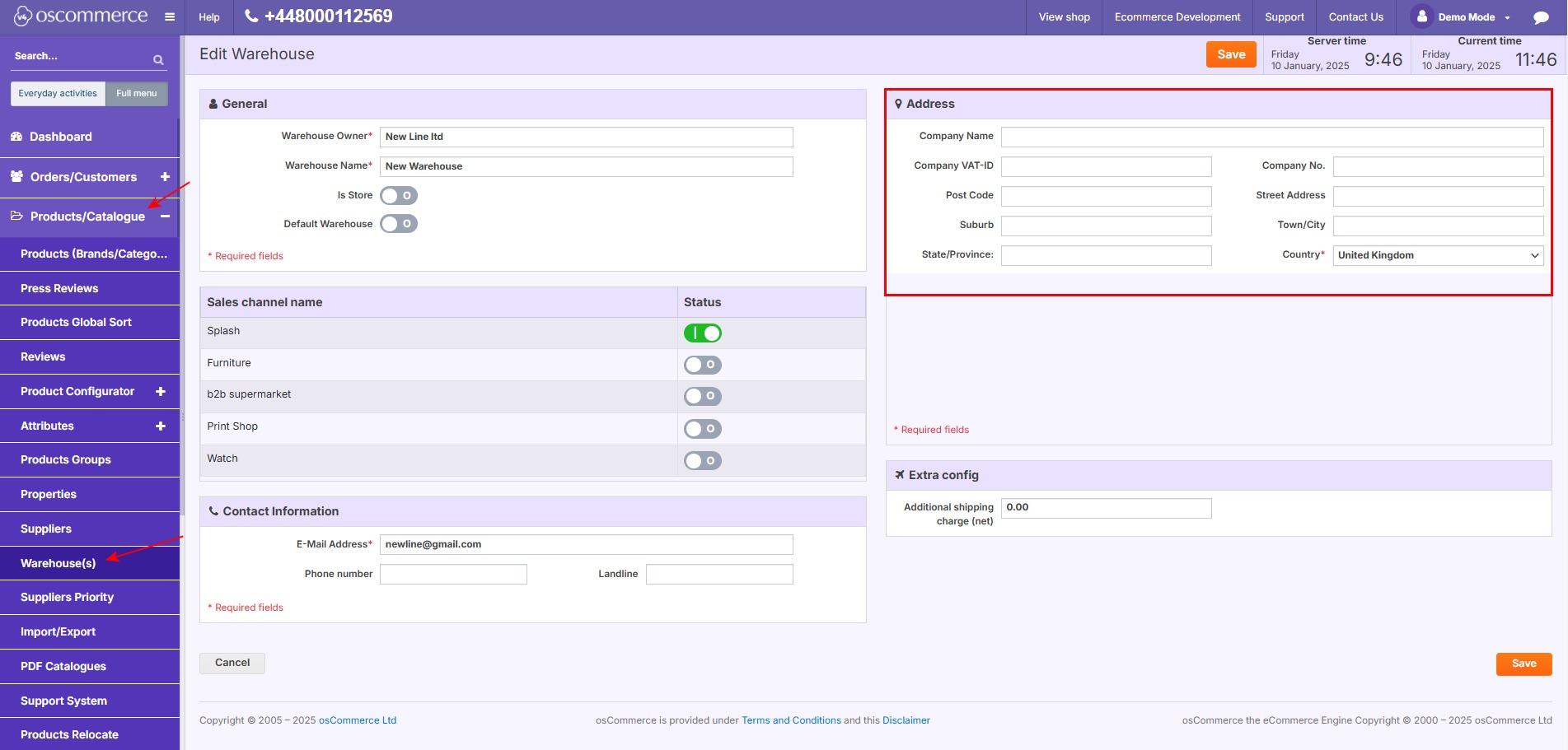 - Open the selected warehouse in Products -> Warehouses and verify or update its address to match the correct shop location.