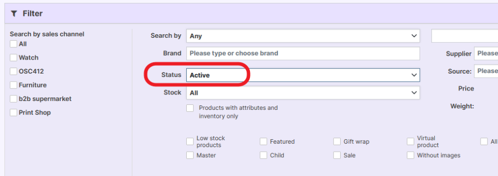 The osCommerce support team provided a simple solution: use the Filter section in the admin panel and select Active status from the dropdown menu. This allows store administrators to quickly view and manage only the products currently available for sale.