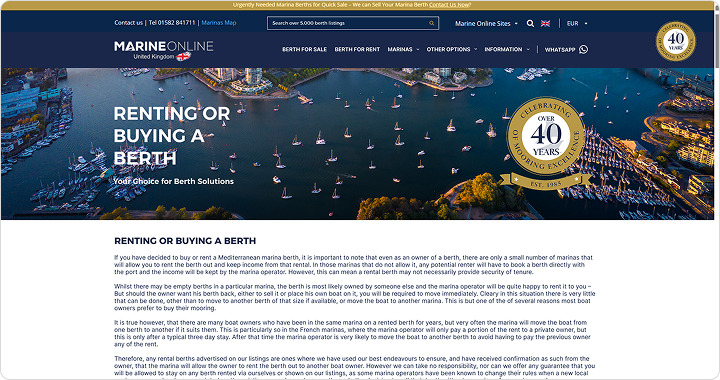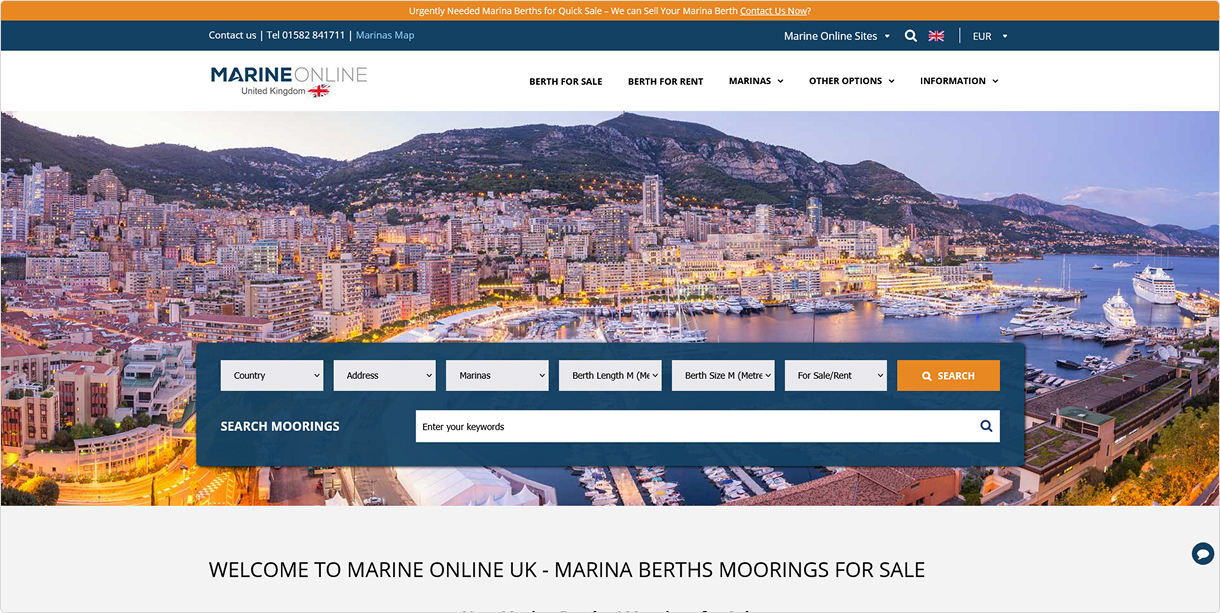 Marine Online is a long-established (since 1985) marina berth brokerage platform offering comprehensive listings and brokerage services throughout the Mediterranean, backed by personalized support, valuation tools, and accessible contact options.